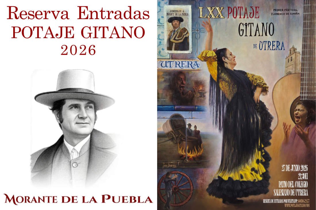 POTAJE GITANOde Utrera2026 08/04/2026Presentado el Cartel del Potaje Gitano 2026 homenaje a Morante de la Puebla… Ver noticia Reserva entradas Más información ORGANIZA COLABORAN PATROCINADORES OFICIALES El Festival Flamencomás antiguodel Mundo Potaje Gitanode Utrera DESDE 1957El Festival Flamenco más antiguo del mundo EDICIONES % FLAMENCO Cultura Gitana (más informacion) Cartelería